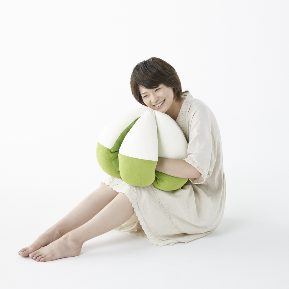 真ん中が空洞になっているので自由自在に変形します。少しつぶしてもたれたり、ぎゅっと抱きしめたり。